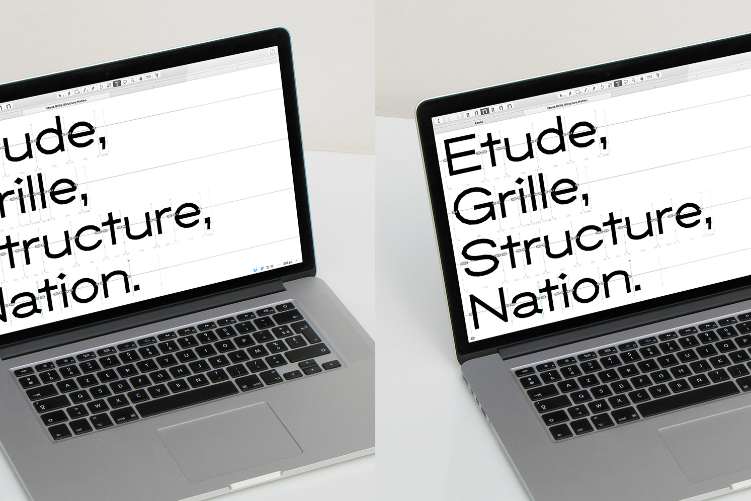 Type design; Allen is a typeface whose curbless design is generated from a modular grids system.