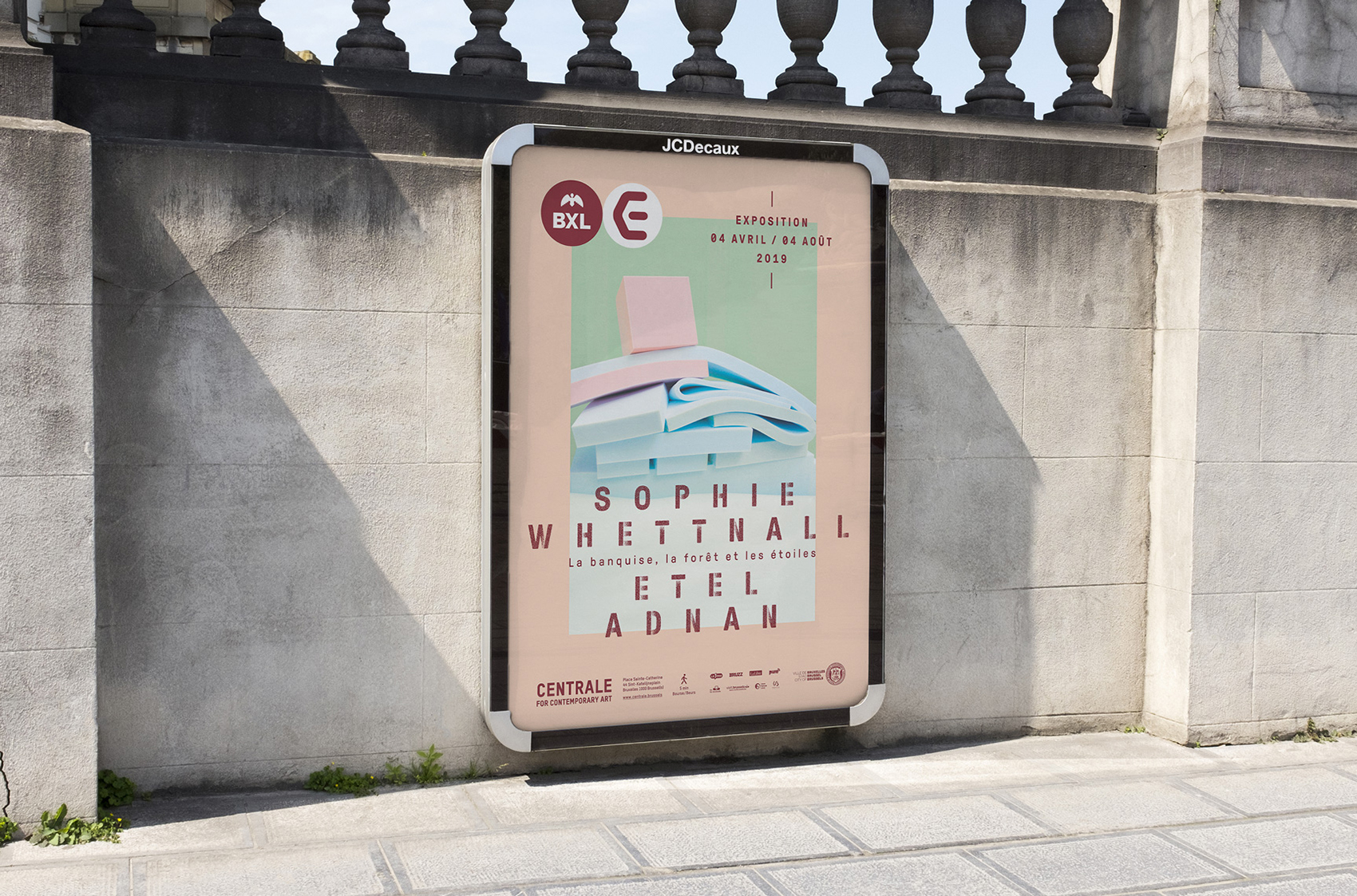 Visual identity, communication supports for the exhibition "Sophie Whettnall - Etel Adnan" at La CENTRALE.